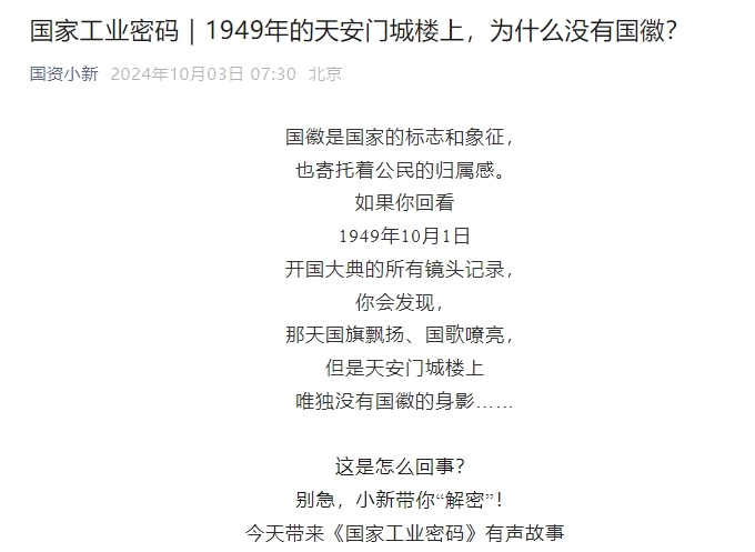 其中,中央廣播電視臺(tái)、新華每日電訊、國(guó)資小新等多家媒體平臺(tái)以沈陽(yáng)機(jī)床鑄造新中國(guó)第一枚金屬國(guó)徽的故事為背景展開(kāi)敘述,展現(xiàn)新中國(guó)在幾乎“一窮二白”的基礎(chǔ)上,建立起今天門類齊全的現(xiàn)代工業(yè)體系的艱辛歷程。