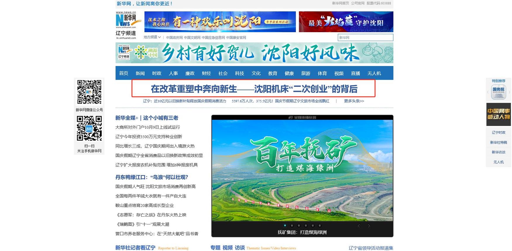 10月13日,新華社“中國經(jīng)濟(jì)樣本觀察”專題報(bào)道中,以“在改革重塑中奔向新生”為題對沈陽機(jī)床改革重整以來的自立自強(qiáng)、創(chuàng)新發(fā)展的做法和經(jīng)驗(yàn)進(jìn)行報(bào)道,并在《新華每日電訊》、新華網(wǎng)官網(wǎng)、新華網(wǎng)客戶端等多個(gè)媒體平臺同步刊發(fā)和推送,點(diǎn)擊量達(dá)600萬+。